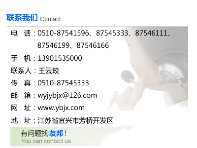 聯系地址:江蘇省宜興市芳橋開發區 郵編:214214